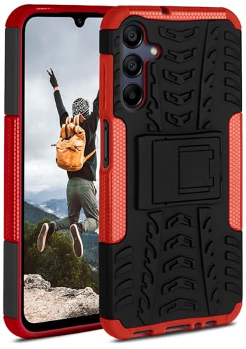 ONEFLOW Tankväska kompatibelt med Samsung Galaxy A15 (4G/5G) – fodral utomhus stötsäkert, mobiltelefonfodral med stativ, kamera och skärmskydd, mobiltelefon hårt fodral, pansarfodral, Vulcano – röd