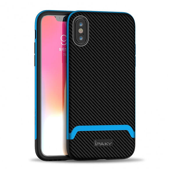 iPaky Slim Carbon Flexible TPU-fodral för iPhone XS / X Blå
