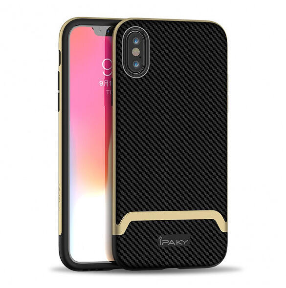 iPaky Carbon Fiber flexibelt skydd TPU fodral till iPhone XS / X Svart