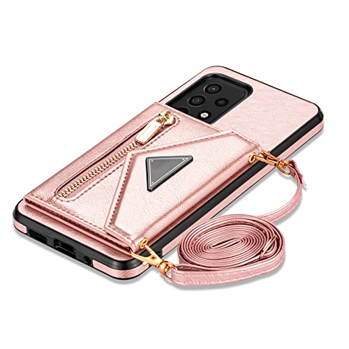 Crossbody-fodral i läder för Samsung Galaxy S20 S21 FE S23 S22 Plus Note 20 Ultra A52 A52s A53 5G A12 Dragkedja till plånboken, rosa, för Samsung S22