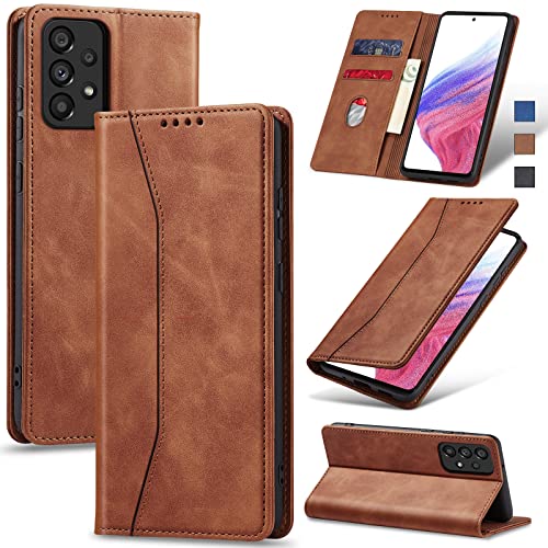 Jasonyu Skal för Samsung Galaxy A53 5G, Premium Läder Vikbart Skyddande Fodral [Hölster, Magnetisk, kortfack, stativfunktion] Wallet Leather Case Cover för Samsung A53 (Brun)
