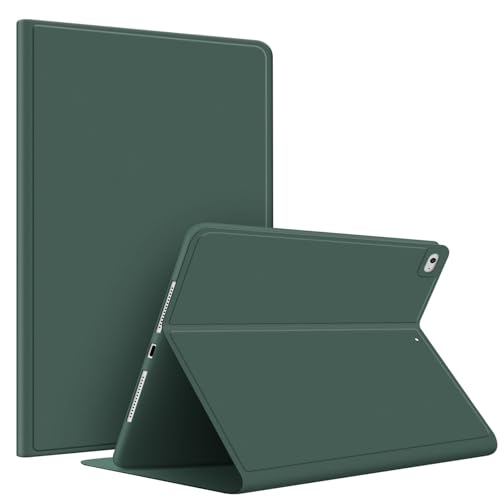 VAGHVEO Fodral för iPad 9,7 tum 2017/2018/iPad Air/Air 2 Case, PU Läder Stötsäker Smart Cover Skal Justera Stativ[Automatisk Vakna/Sömn], Flexibel Mjuk TPU Skyddande Bakskydd för iPad 5/6th, Mörk Grön