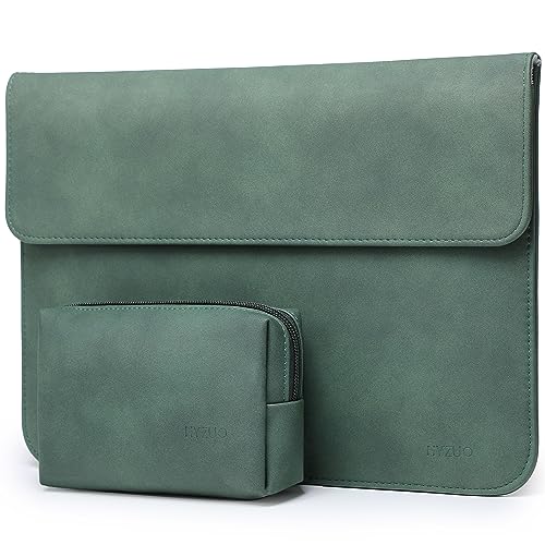 MoKo Laptop Sleeve Compatible with 13/13.6" MacBook Air M2/M1/ Pro M1 13.3 2022-2018, Galaxy Tab S8+ 12.4", PU Leather Notebook Computer Briefcase Carrying Bag Slim Stylish Case Pouch, Midnight Green