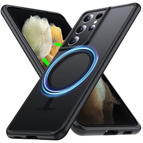 FNDMIL [NO.1 Magnetiskt] för Samsung Galaxy S21 Ultra Fodral med Magnetisk [Genomskinligt Matt] [Anti-Fingeravtryck] [Militärt Skydd] Mjukt Silikonfodral Hårt Fodral för S21 Ultra Case 6,8 Tum, Svart