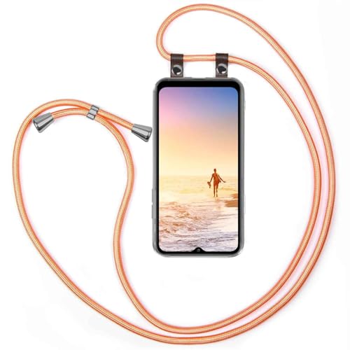 moex Mobiltelefonkedja kompatibel med Samsung Galaxy A02s – silikonfodral med band – mobiltelefonfodral för upphängning – fodral transparent med snöre – skyddsfodral med snöre, utbytbar i roséguld
