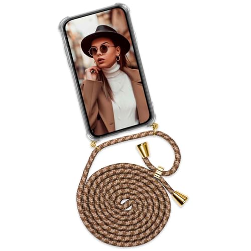 ONEFLOW Mobiltelefonkedja "Twist Case" kompatibel med Samsung Galaxy A02s – fodral med band, avtagbar smartphone-halsband, silikon mobiltelefonfodral för upphängning, kedja utbytbar – guld beige