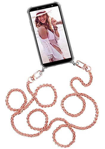 ONEFLOW Mobiltelefon kedja avtagbar kompatibel med Samsung Galaxy A21s – fodral med band, mobiltelefonfodral med kedja av metall för hängning, roséguld