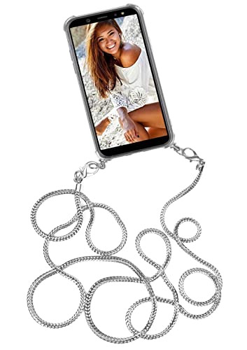 moex Mobiltelefonkedja kompatibel med Samsung Galaxy A21s – silikonfodral med band – mobiltelefonfodral att hänga – fodral transparent med sladd – skyddsfodral med dragsko, utbytbar i silver