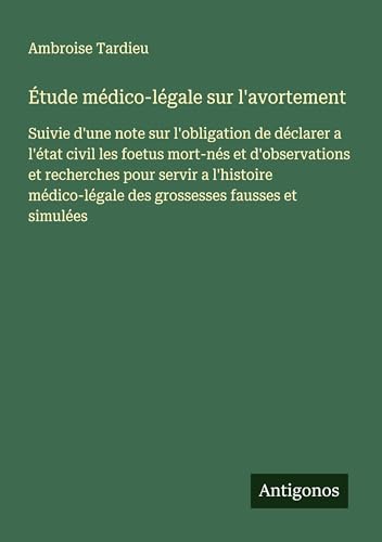 Étude médico-légale sur l'avortement: Suivie d'une note sur l'obligation de déclarer a l'état civil les foetus mort-nés et d'observations et ... des ... des grossesses fausses et simulées