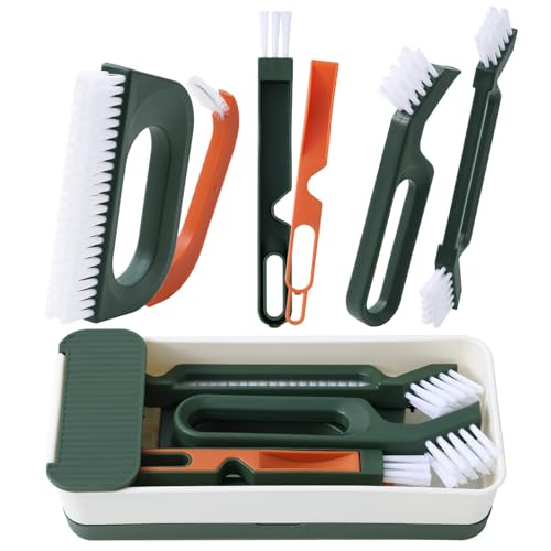 Gucass 7-i-1 fogrengöringsborstsats, rengöringsborste i keramiskt kakel, fogborste och klyvningsborste, rengöringsborstar, för djuprengöring av duschgolv, badrum och kök (grön)