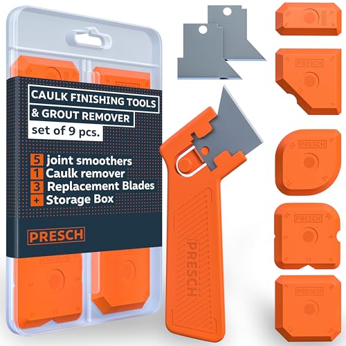 Presch Fogplattång inkl. Fogskrapa - 6-delad Allt-i-ett set med låda - Perfekta fogar tack vare extremt raka kanter - Speciella knoppar för enkel upphämtning - Idealisk för tätningsmedel som akryl