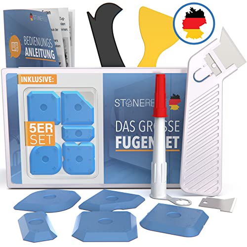 ECD Germany Fogplattång set 5 delar – fogavdragare set för silikon, silikonfogar och akryl – fogspackel plattspackel silikonspatel silikonplattång silikonavdragare silikonskrapa fogskrapa