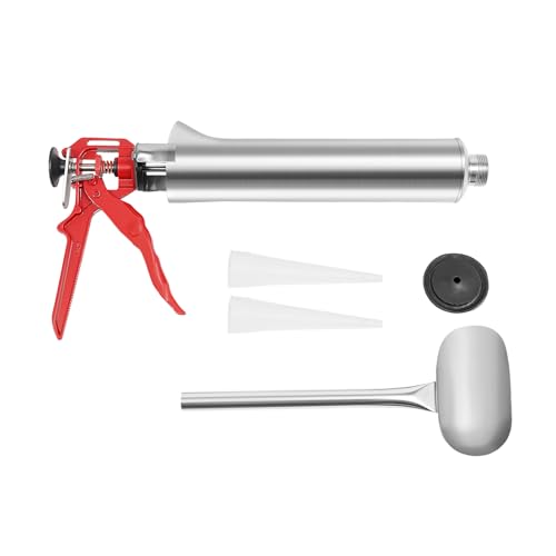 EXLECO Mortelspistol, rostfritt stål, fogpistol för murbrukspress, murbruksspruta fogspruta med 4 munstycken, 1 ersättningsgummikolv, 1 sked, betong handmurbrukspump för tegelspetsar och kakel