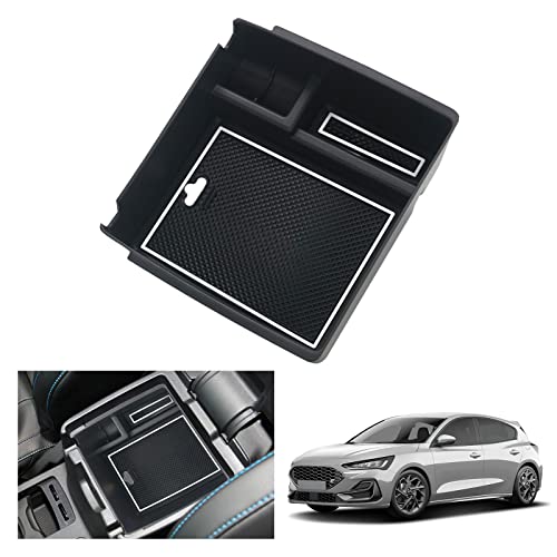 GAFAT Fo-rd Focus MK4/Kuga MK3 ST Line 2018–2024 2025 mittkonsol förvaringslåda, fokus MK4 ST Line Kuga 3 armstöd arrangör bricka handskfack, kompatibel med Ford Focus MK4 tillbehör (svart)