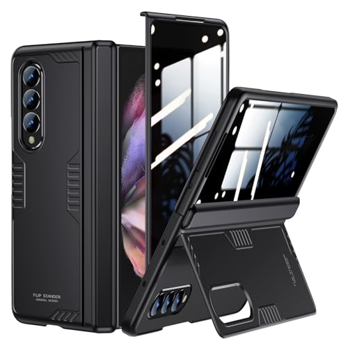 Samsung Galaxy Z Fold3 5G skal med ett skärmskydd och ett stativ - Svart