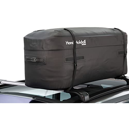 HandiWorld HandiHoldall 175 Litres Waterproof Soft Roof Box – Foldable Roof Bag with Solid Base - Black