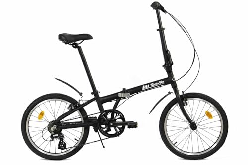 Multibrand Probike folding, Hopfällbar cykel 20 tum, 310 mm, hopfällbar City bike med 6 hastigheter, unisex, stänkskärmar fram- och baktill, (svart och grön, glänsande)