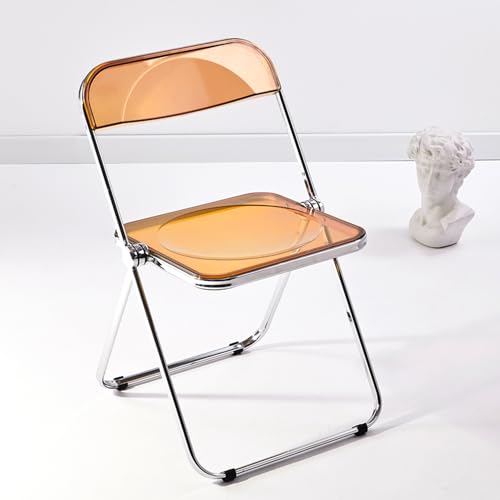 KAIHAOWIN Luxury Modern Acrylic Folding Chairs Transparent Clear Folding Chair-Acrylic Ghost Stackable Crystal Seat-PC Plastic Living Room Seat-Chrome Frame Accent Side Chair (Tawny)