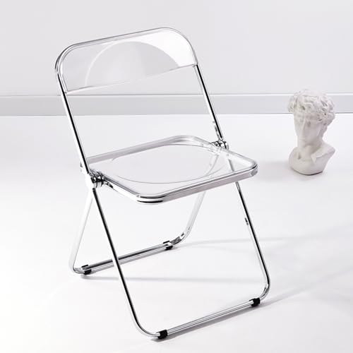 KAIHAOWIN Luxury Modern Acrylic Folding Chairs Transparent Clear Folding Chair-Acrylic Ghost Stackable Crystal Seat-PC Plastic Living Room Seat-Chrome Frame Accent Side Chair (transparent)