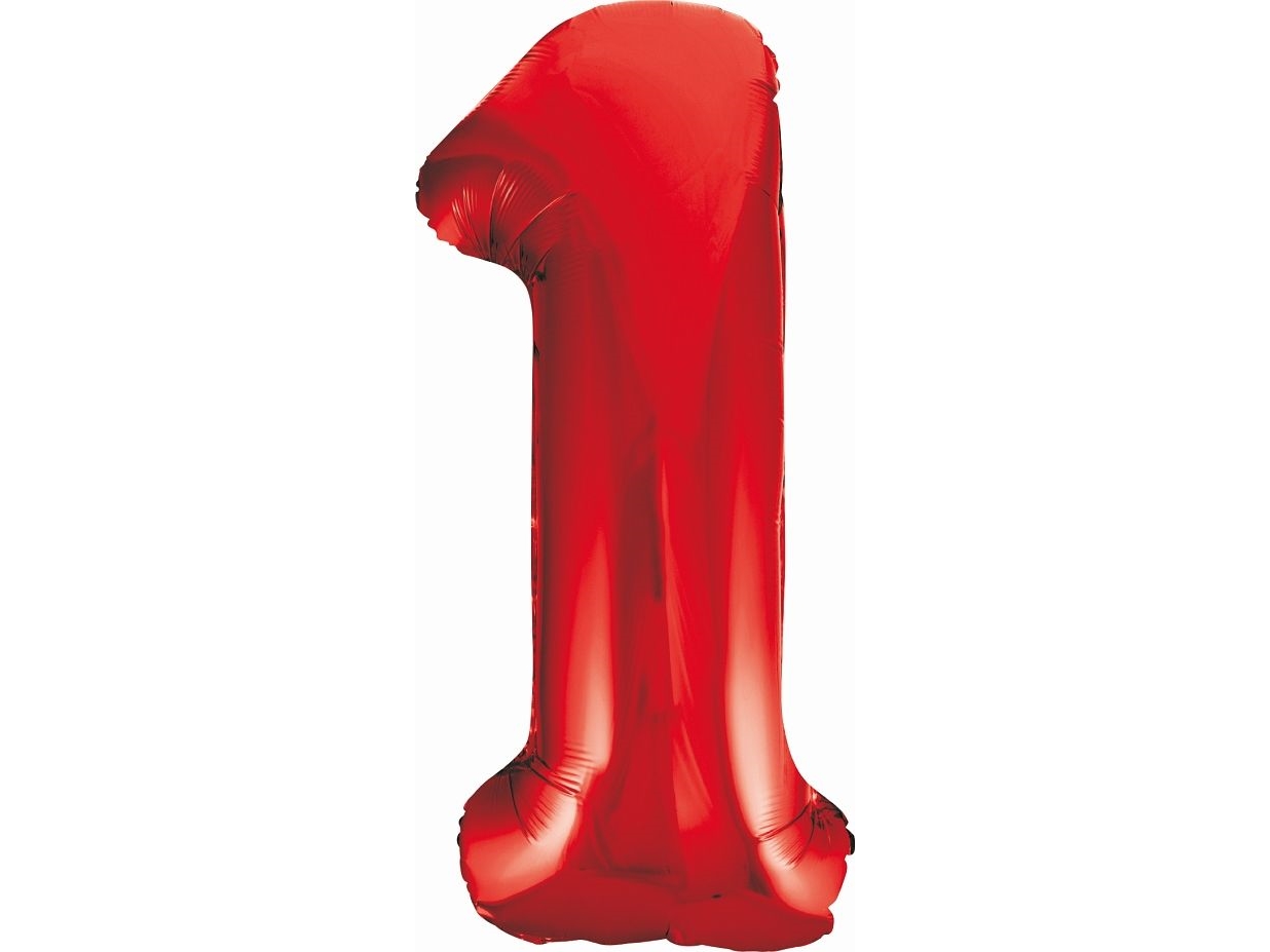 Ny folieballong stort nummer 1 röd, 33 x 86 cm