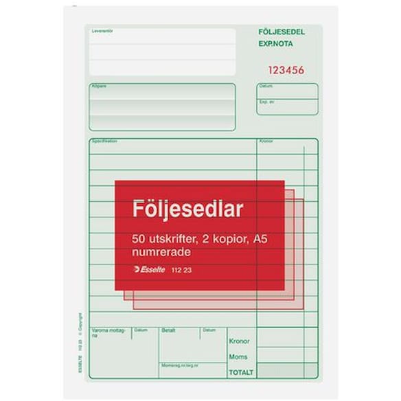 Följesedel A5 med kopia 2x50 blad onumrerade