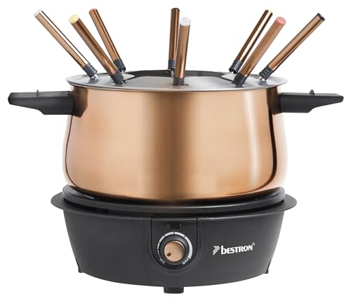 Bestron Elektrisk fondue-set för upp till 8 personer, med 8 x fonduegafflar och steglös termostat, inkl. stänkskydd, färg: koppar