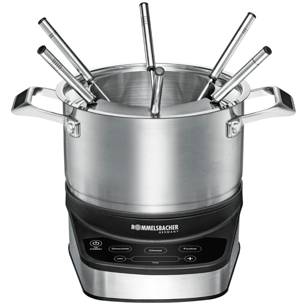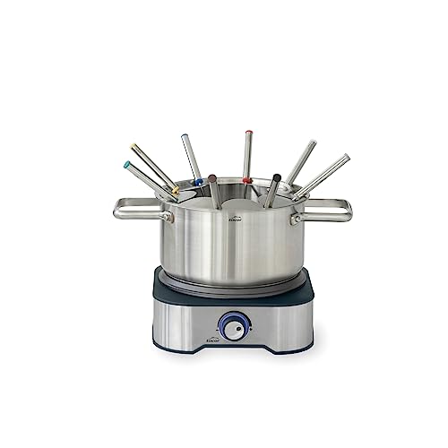 Lacor 69399 - Elektrisk fondue, smält ost och choklad, med 8 gafflar, löstagbar kastrull, värmemodifierare, justerbar termostat, rostfritt stål, 1500 W