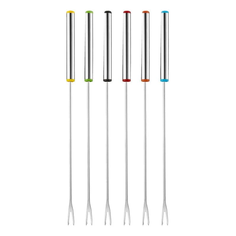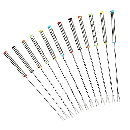 GuDoQi Fonduegafflar i rostfritt stål, 12 stycken, 24 cm, värmebeständigt handtag, set med 6 färger, perfekt för chokladfonduefontänfest, ostgafflar