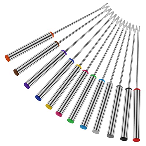 Prasacco 12 st fonduegafflar, 24 cm rostfritt stål fondue-pinnar med värmebeständigt handtag för ost choklad fondue, rostat kött