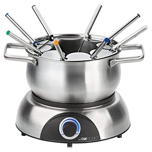 Clatronic® Fondue-Set | Fonduekruka Av Rostfritt Stål (Ø 18,5 cm) | Upp Till 1,2 Liter | Värmebas | Termostat (Upplyst) | Fonduegafflar | Gaffelhållare (Avtagbar)
