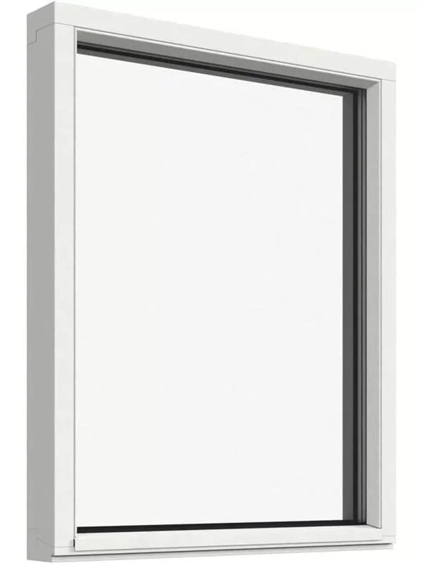 Effektfönster Fast fönster med bågpost Trä 3-glas U-värde 1,1 10x6 Frostat glas Spaltventil vit