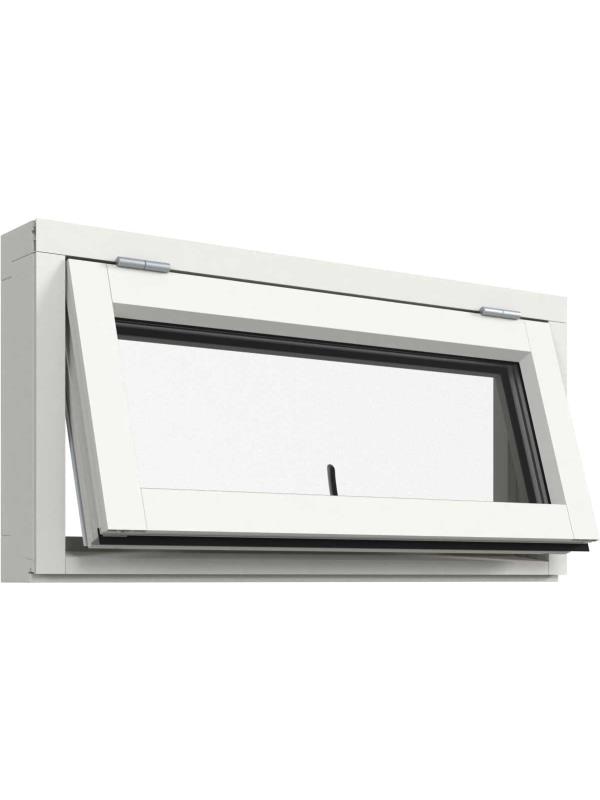 Effektfönster 3-glas överkantshängt träfönster 1-Luft 10X7 Överhängd Frostat glas Spaltventil vit