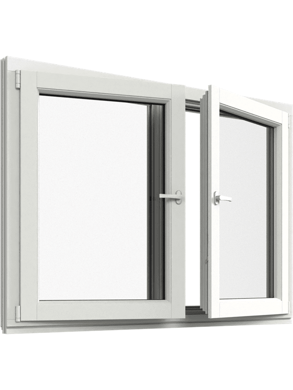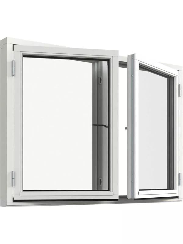 Effektfönster Vridfönster med mittpost 3-glas Trä U-värde 1,1 11x16 Frostat glas Spaltventil vit