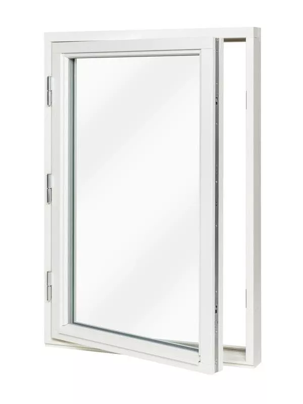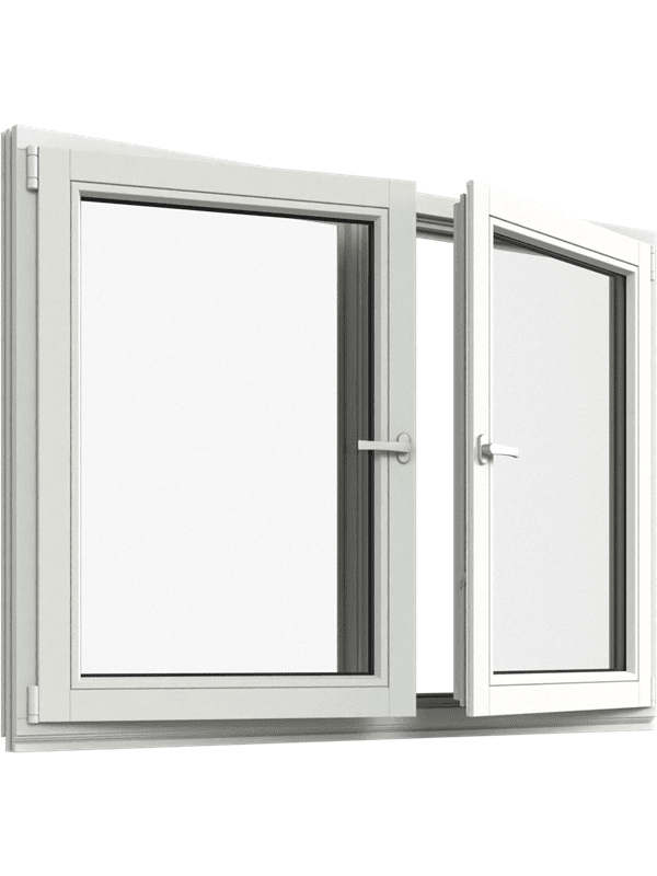 Effektfönster Vridfönster med mittpost 3-glas Trä U-värde 1,1 11x16 Frostat glas Ingen spaltventil