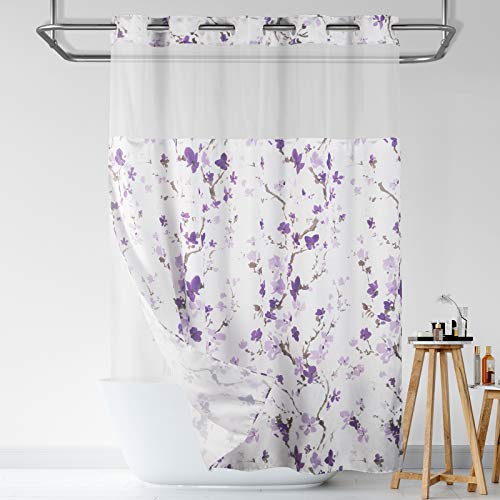 Lagute SnapHook Hook gratis duschdraperi med snäpp-in-foder och genomskinligt fönster | hotellkvalitet, maskintvättbar och vattenavvisande | 71 B x 74 L, lila blomma