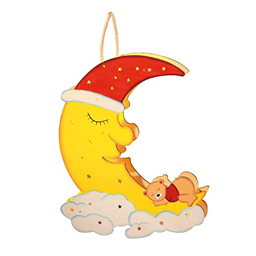 Hellum 574036 LED fönsterbelysning av trä "trä måne med sovande björn färgglada 10 varmvita LEDs, batteridrivna