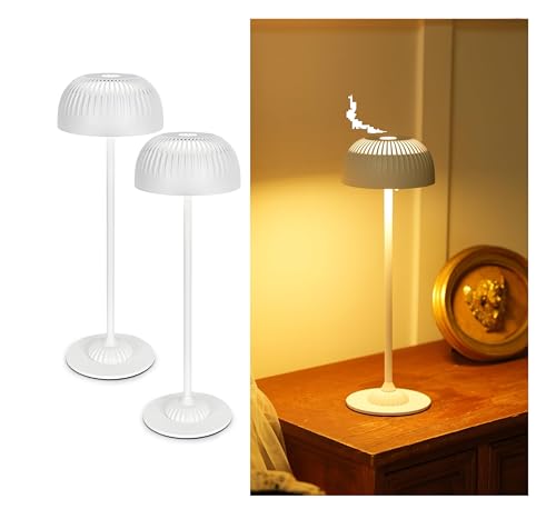 LuminexDesigns Uppsättning av 2 trådlösa bordslampor i vitt, dimbar, snygg för vardagsrum eller fönsterbräda