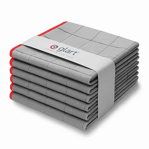 Glart 44C6R 6 x kolhanddukar, fönsterrengöringsdukar, fönsterduk, bil-dukar, mikrofiberglasdukar, bil, fönsterduk utan ränder och ränder, skivor polerdukar, luddfria 32 x 32 cm, 400 GSM