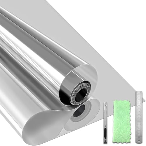 Qualsen Spegelfilm för fönster, fönsterfilm, värmekontroll, anti-UV, perspektiv, sekretessfilm lämplig för hemmakontor (silver-silver, 44,3 x 200 cm)