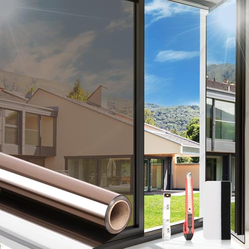 Lifetree Fönsterfilm, spegelfilm, värmereflekterande, självhäftande solskyddsfilm, temperaturkontroll, fönsterdekal, skyddar mot UV-strålar, integritet, glas, tonade fönster, slät, fönsterdekal, 44,5