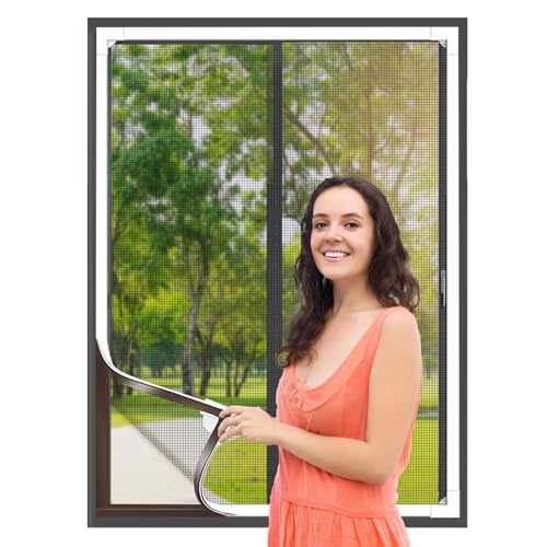 REDTRON DIY-fönstergaller med dragkedja(1 stycken, svart), 130 cm x 150 cm självhäftande fönstergaller, justerbart myggnät som håller insekter/flugor ute