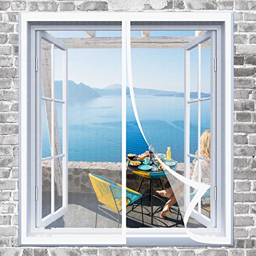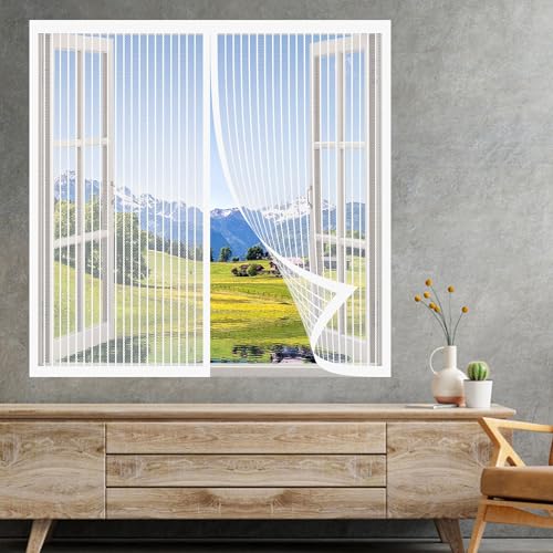 LATERN Magnetisk fönsterskärm, 100 cm x 120 cm glasfiber flugskärm justerbart myggnät fönster insektsnät – med installationstillbehör och instruktioner (vit ram med grått nät)