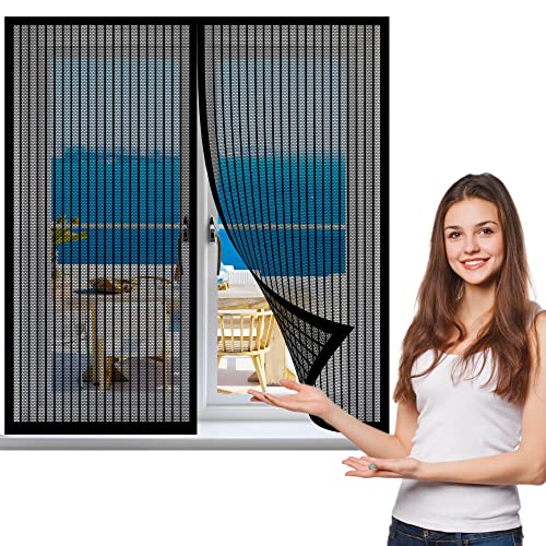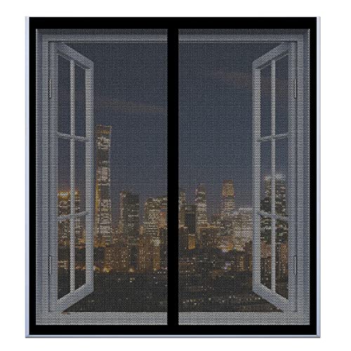 Magnetisk fönsterskärm 165 x 165 cm, Mosquito Insects Mesh Gardin, Släpper in frisk luft for All Kinds of Window, Svart