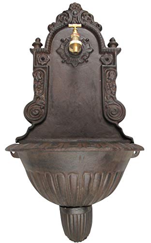 Handfat vägg fontän trädgård järn antik stil fontän brun 65cm