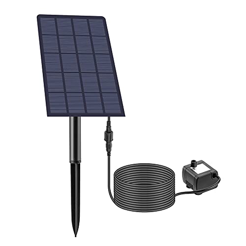 AISITIN Solpump för fontän, 2,5 W soldriven vattenpump solpanelsats vattenpump nedsänkbar pump soldriven vattenfunktion med 6 munstycken och transparent slang för damm, fontän, fågelbad, trädgård