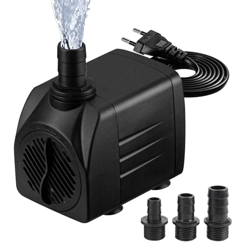 Aquagarden, ekonomisk dammpump för fontäner, vattenfall och vattenspel, justerbar effekt och vattenflöde, torrkörskydd, pumpkapacitet upp till 4 500 liter