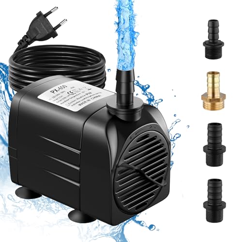 Aquagarden, ekonomisk dammpump för fontäner, vattenfall och vattenspel, justerbar effekt och vattenflöde, torrkörskydd, pumpkapacitet upp till 6000 liter