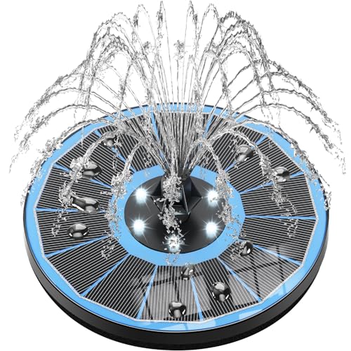 SZMP Solfontänkit, 2025 uppgradering justerbar glaspanel soldrivna fontäner, utomhus fågelbad vattenpump med sugare, 3 m kablar, 10 munstycken för trädgård, damm, fågelbad, gör-det-själv-fontäner