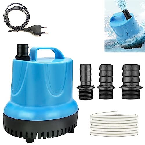 Nizirioo Ultra tyst liten dränkbar pump: 20 W 1 500 L/H akvariepump med 3 munstycken och 1,5 m slang, vattenpump för fontäner, trädgård, fontän, damm (blå)