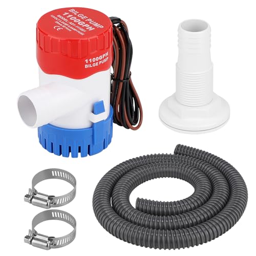 CPROSP 12 V vattenpump 1100GPH med φ29 mm slang med 1 x 1,88 m grå slang och 2 tysta klämmor för husvagnar, fiskebåtar, små pooler och fontäner